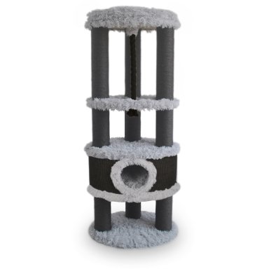 Fabian van duvoplus is een grote, stabiele krabpaal met 2 comfortabele ligplatformen en 1 schuilhuisje in langharige pluche, er is dus voldoende ruimte voor je kat om te krabben, op uitkijk te staan en uit te rusten. De krabpaal is afgewerkt met een speeltouw. De paal van 12cm dikte is bekleed met robuuste zwarte sisal om de nagels te scherpen. Katten wrijven ook graag hun feromonen af op een krabpaal om stress te verlagen.