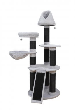 Voor katten is een krabpaal erg belangrijk om hun nagels te verzorgen en territorium te markeren. De EBI Ottawa is gemaakt van zacht grijs plush en heeft maar liefst acht robuuste krabpalen omwikkeld met sterk sisal. Ottawa beschikt over diverse rustplaatsen. Helemaal bovenop is de krabpaal voorzien van een superzacht schuil- en rusthuisje. Daarnaast heeft de krabpaal een pluche hangmat en een zacht mandje waar jouw kat heerlijk in kan ontspannen. Door de verticale krabplank biedt de krabpaal zowel horizontale als verticale krabmogelijkheden voor jouw kat. Door de verschillende plateaus en rustplaatsen is de Ottawa een super speelse krabpaal.